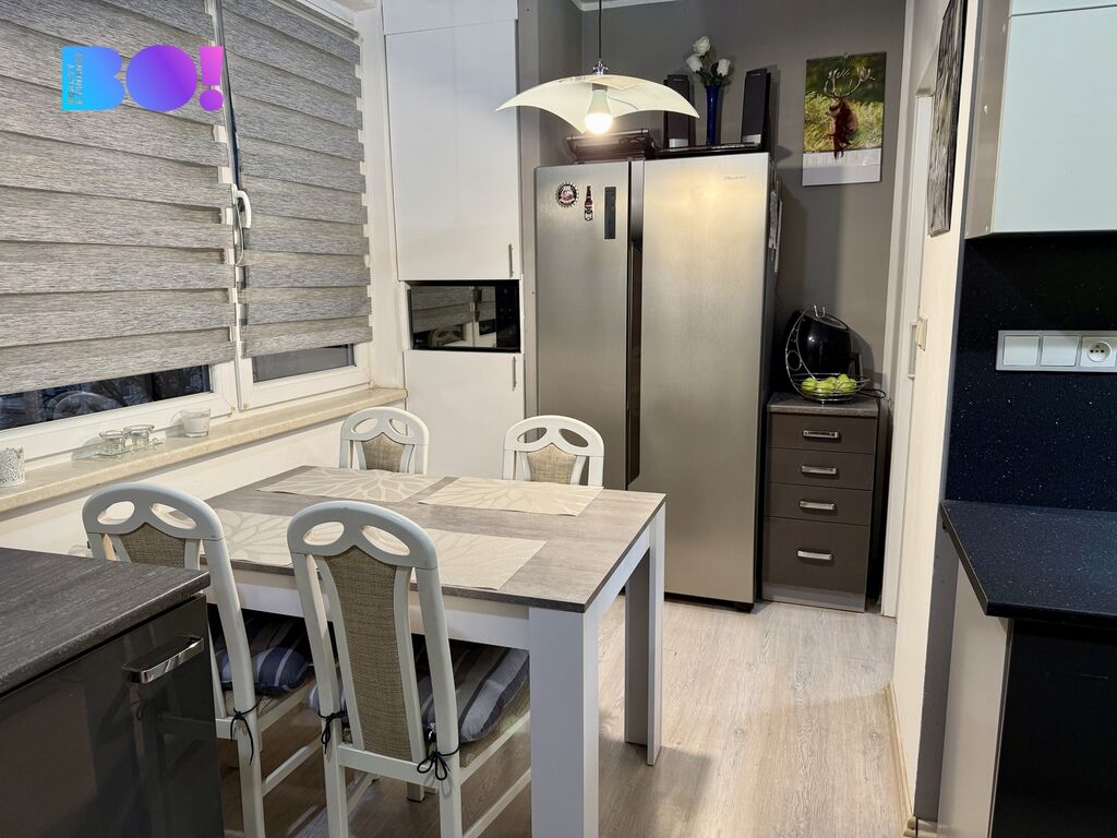 Byt s balkónem se nachází ve třetím patře bytového domu po revitalizaci, který má celkem čtyři patra. Má nové bytové jádro, podlahová plocha bytu je 73 m², k tomu balkón a sklepní kóje. Byt je po rekonstrukci ve velmi pěkném a zachovalém stavu a k nastěhování bez nutnosti dalších investic.