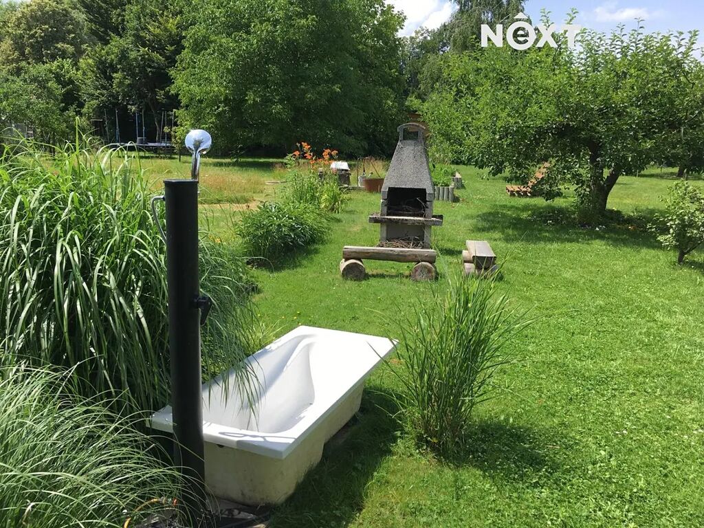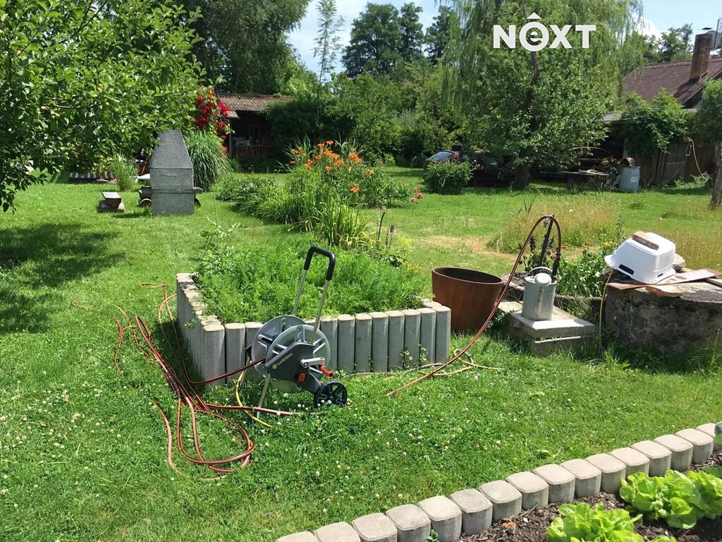 Na pozemku se nachází menší zahradní domek, který slouží jako praktické zázemí během pobytu na zahradě. Jedná se o drobnou stavbu nezapisovanou do katastru – vhodnou jako sklad zahradního vybavení či kryté posezení.