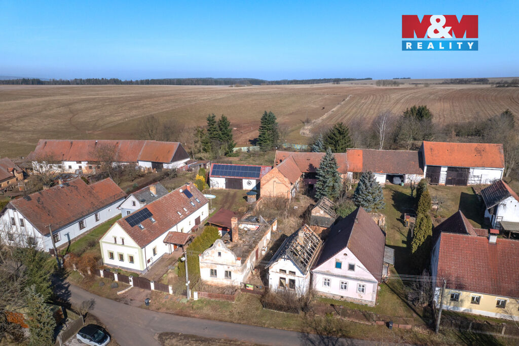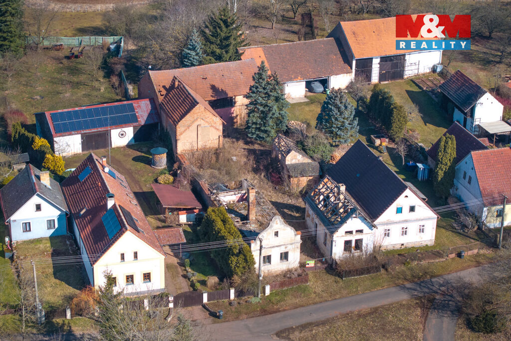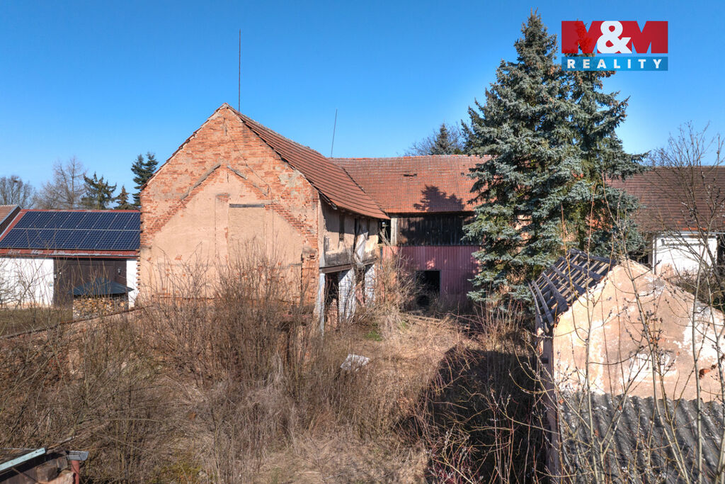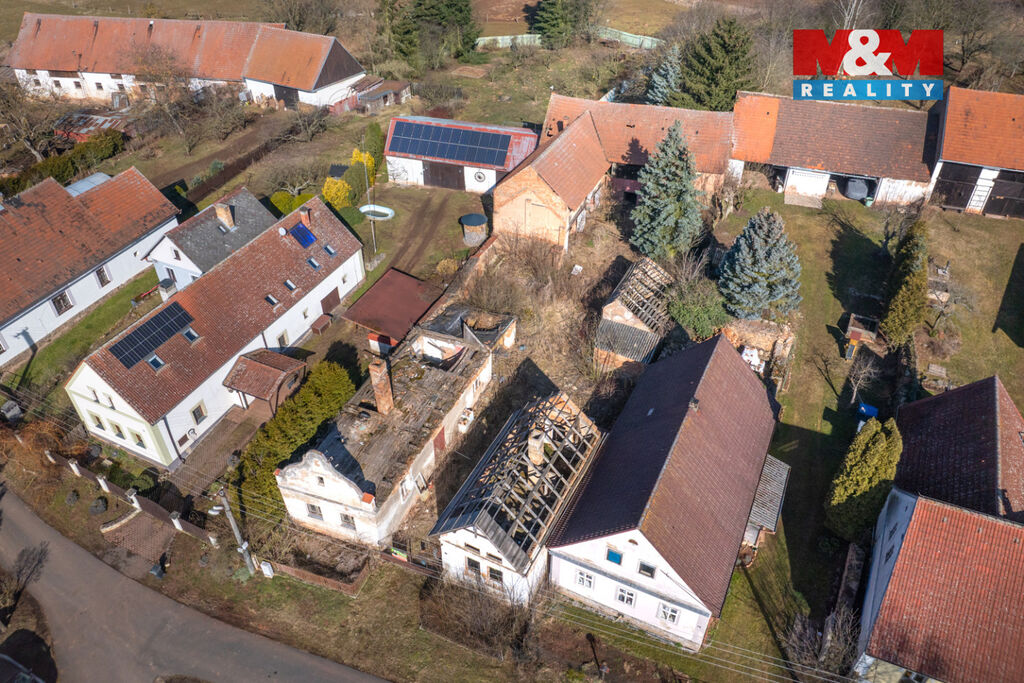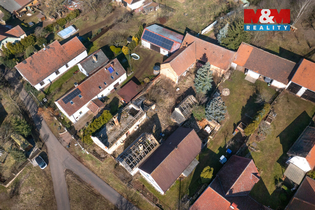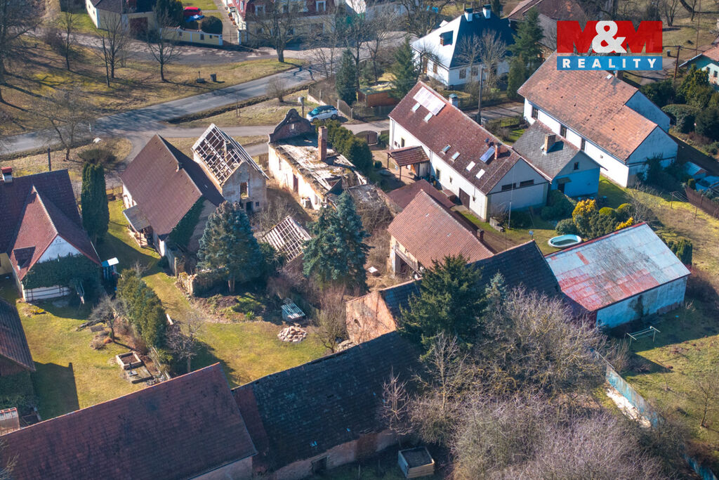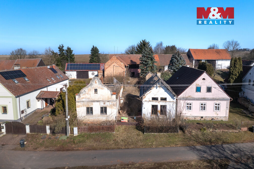 K prodeji je zde pozemek o velikosti 856 m2, na kterém stojí dva rodinné domy s dvěma čísly popisnými a velká stodola. Oba domy jsou ve špatném stavu a jsou tak určeny buď k celkové rekonstrukci anebo přímo k demolici. Demoliční výměry na oba domy a projektová dokumentace na nový dům jsou k dispozici.