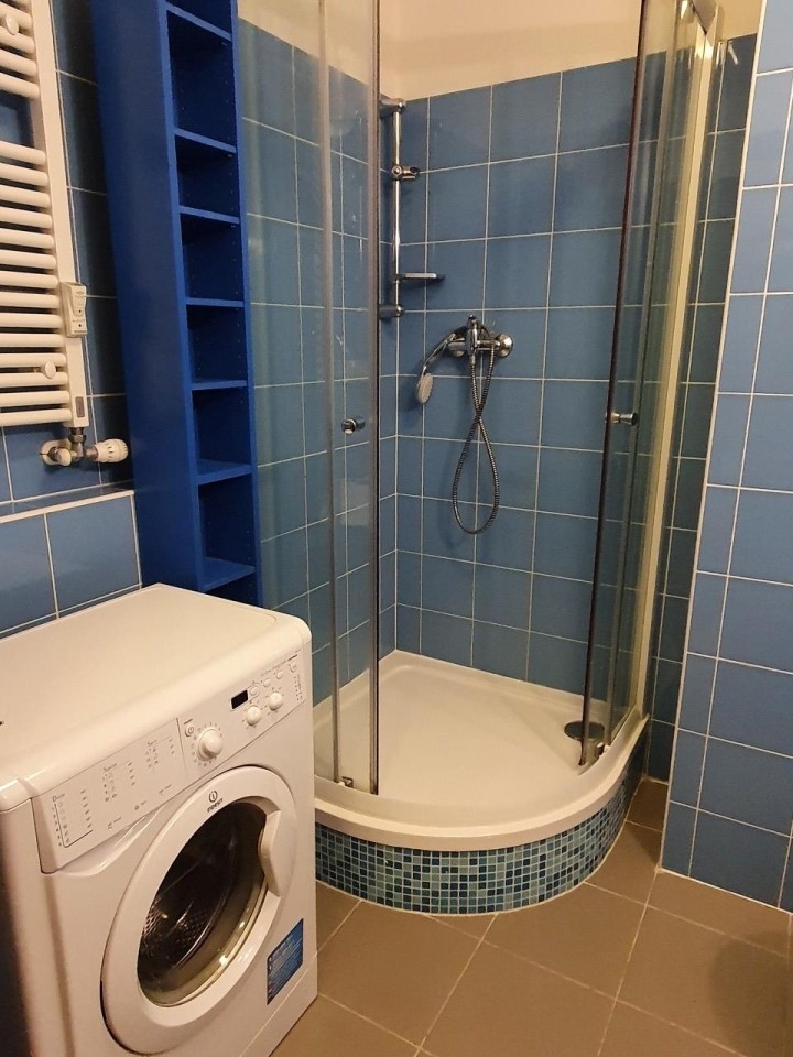 Byt je zařízený pěkným nábytkem včetně kuchyňské linky s indukční varnou deskou a el. troubou, lednice, myčka, mikrovlnná trouba, nábytek viz foto včetně rozkládací pohovky a velké vestavěné zrcadlové skříně v chodbě (TV a pračka nebudou, náleží současnému nájemci). V koupelně je sprchový kout a WC. Na podlaze je plovoucí podlaha a dlažba. Topení je ÚT. Součástí bytu je i prostorná komora/sklep na patře domu přímo naproti bytu. Parkování je možné na ulici (modré zóny).