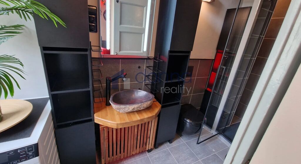 V koupelně je sprchový kout s nikou, toaleta, 3 velké úložné skříňky, umývadlo z vodního kamene, bojler 120 L /vše úplně nové/, koupelna má velká okna, které se dají otevírat.