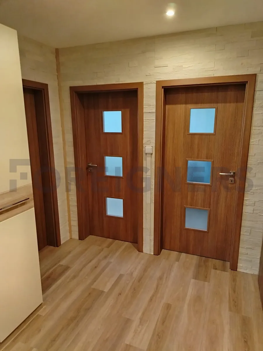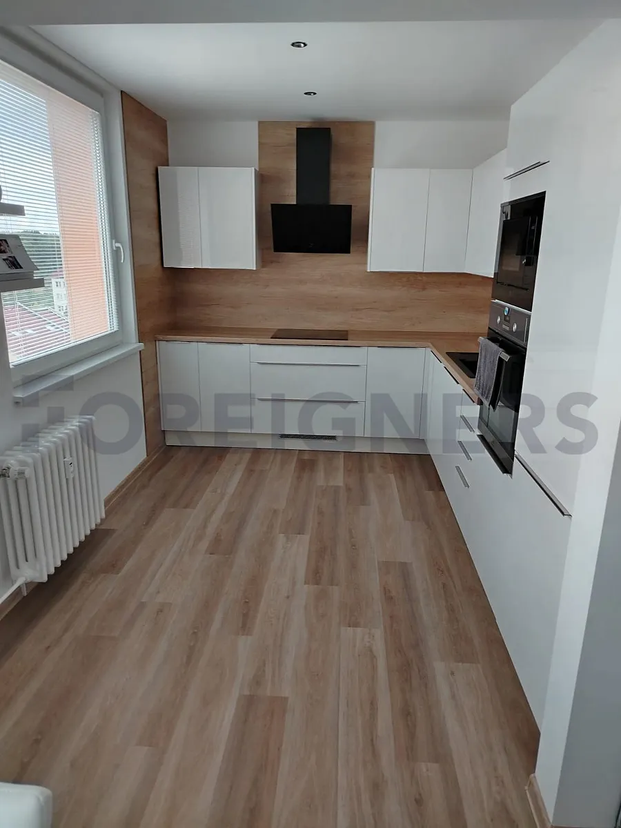 Byt je nabízen jako částečně vybavený což skýtá skvělou možnost dotvořit si jej dle vlastní představy a preferencí. Hlavní chodba je vybavena vestavěnou šatní skříní s věšákem na kabáty. V koupelně je umístěna vana, umyvadlo se skříňkou a zrcadlem. Kuchyně je moderní - vybavena elektrickou troubou, indukční deskou, digestoří, zabudovanou myčkou a také lednicí s mrazákem.