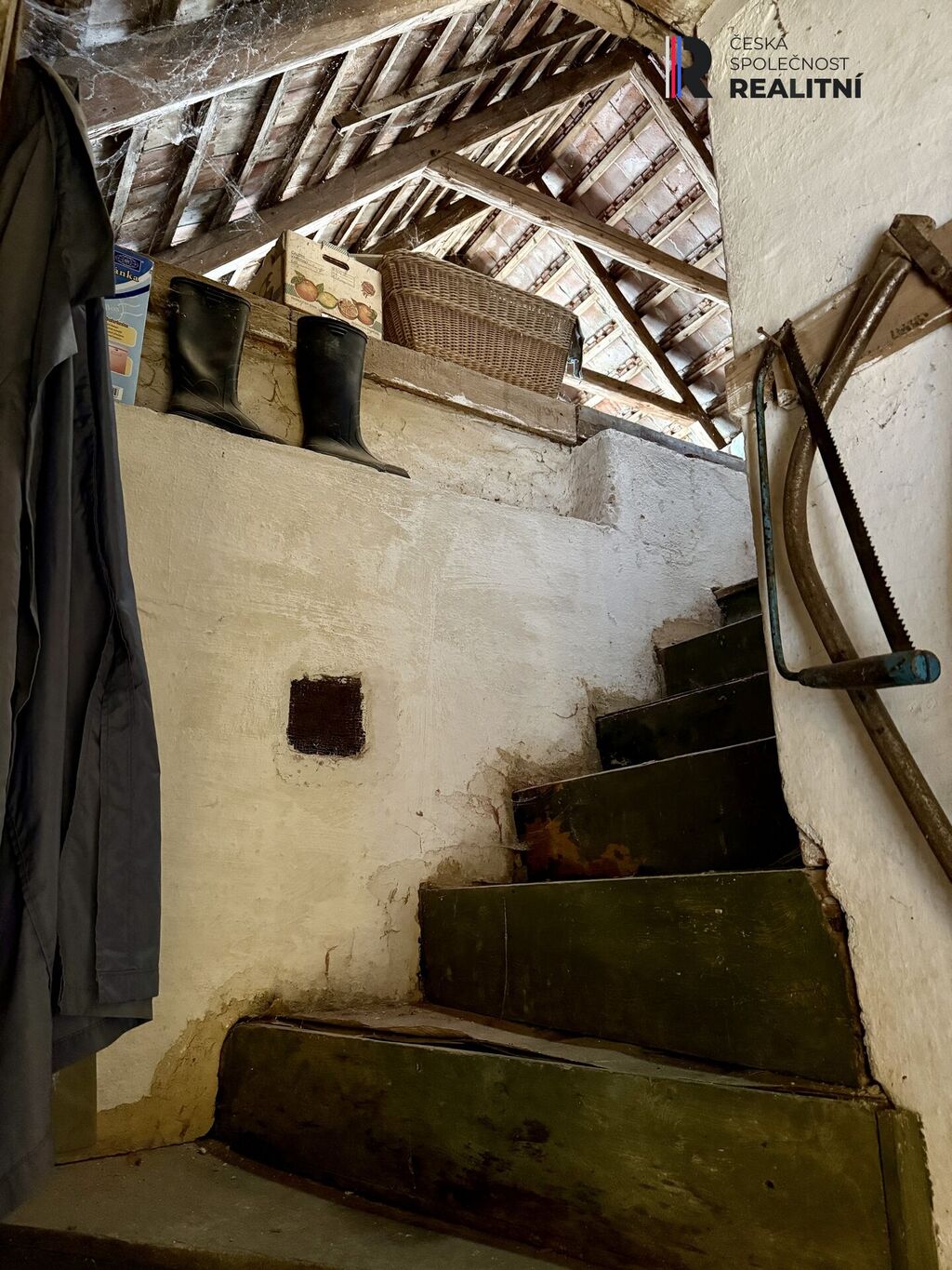 Půda sloužila jako úložný prostor, je dostatečně velká pro to, aby zde vznikly v případě potřeby další dva pokoje.