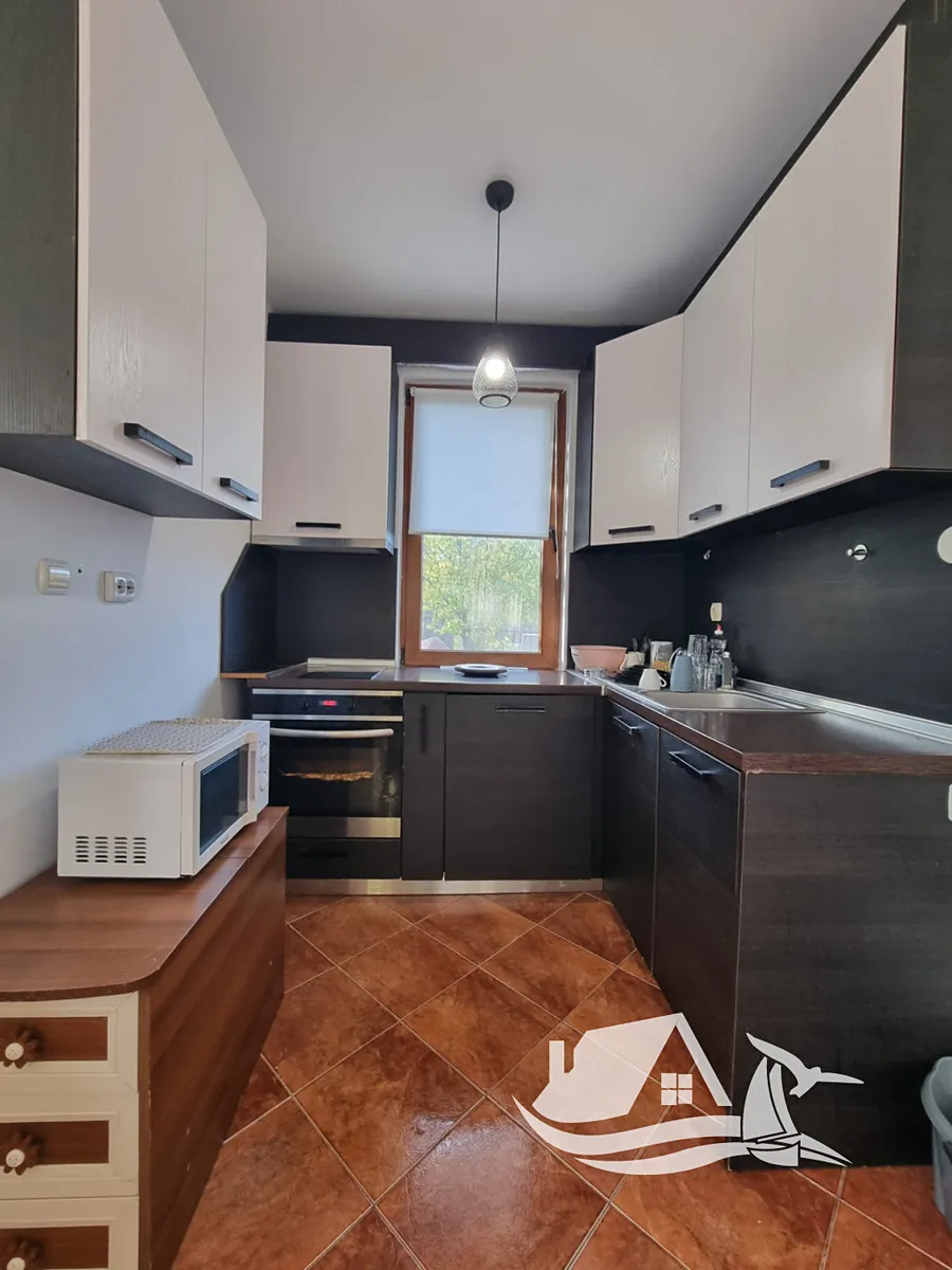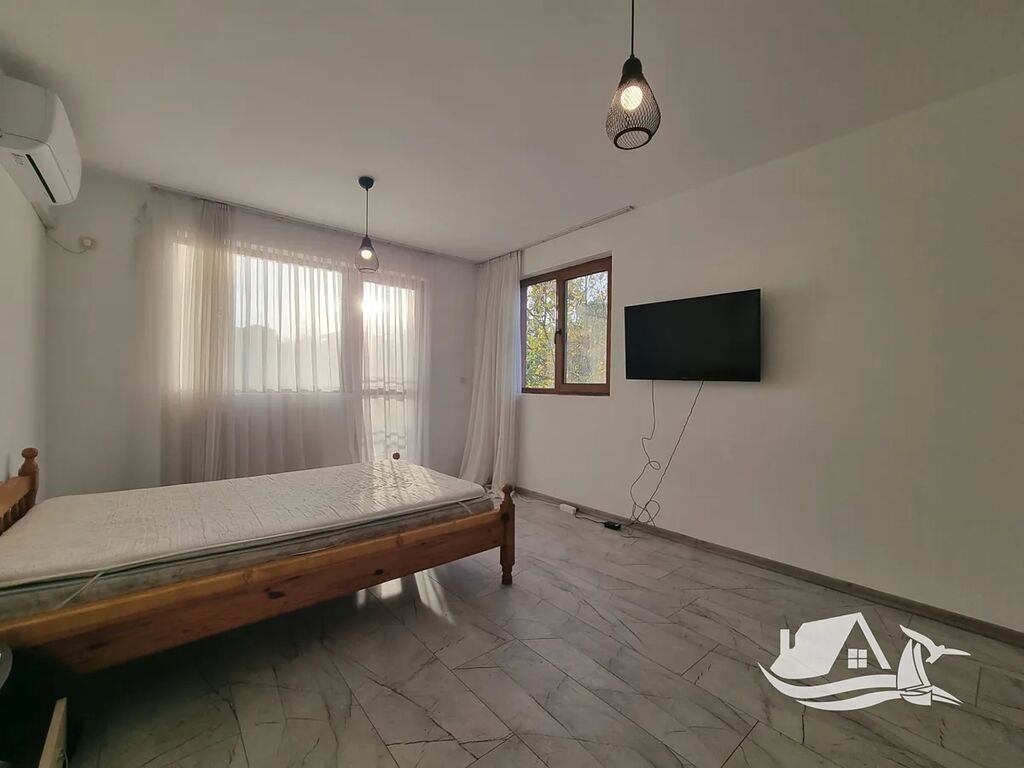V přízemí se rozprostírá prostorný obývací pokoj s kuchyňským koutem, jehož atmosféra vybízí k setkání u stolu, ranní kávě i odpočinku po dni stráveném u moře. V horním patře se nacházejí dvě samostatné ložnice a dvě koupelny, díky nimž si každý člen domácnosti dopřeje soukromí. Dům disponuje balkony v přízemí i v patře, které otevírají výhled do zeleně a přinášejí příjemný prostor pro večerní posezení. Součástí zahrady o velikosti 269 m² je také bazén, jenž v létě nahradí cestu k pláži a nabídne dokonalé soukromí. Dům se prodává kompletně vybavený, takže je připravený k okamžitému užívání.