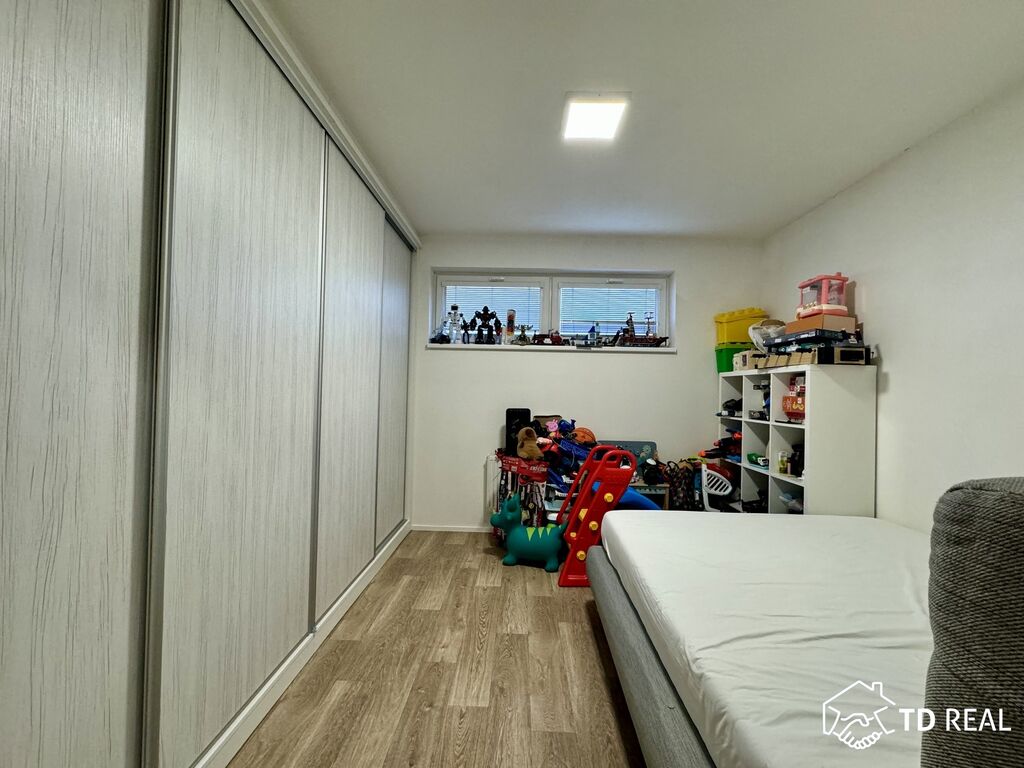 Dispozice: vstupní chodba se vstupy do šatny/komory, koupelny, toaleta je zvlášť, vstup do obývacího pokoje s kk 20m2. Obývací pokoj je průchozí do ložnice 17m2, ložnice je dále průchozí do dětského pokoje 13m2.