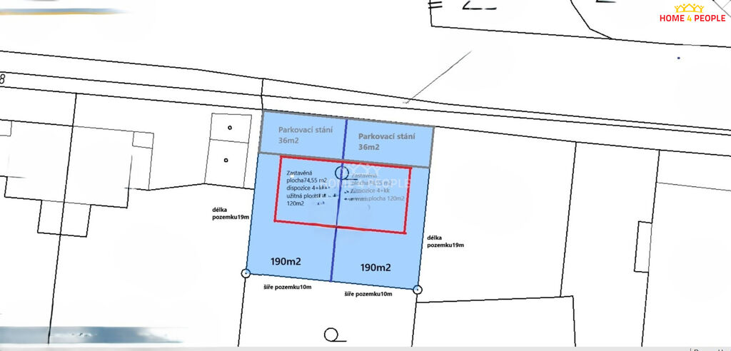 Vlastní pozemek 190 m² soukromí a pohodlné parkovací stání 36 m².