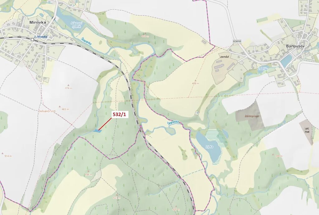 Lesní pozemek o výměře 870 m2, parcelní číslo 532/1, podíl 1/1, katastrální území Mírovka, obec Havlíčkův Brod, obec s rozšířenou působností Havlíčkův Brod, okres Havlíčkův Brod, Kraj Vysočina.