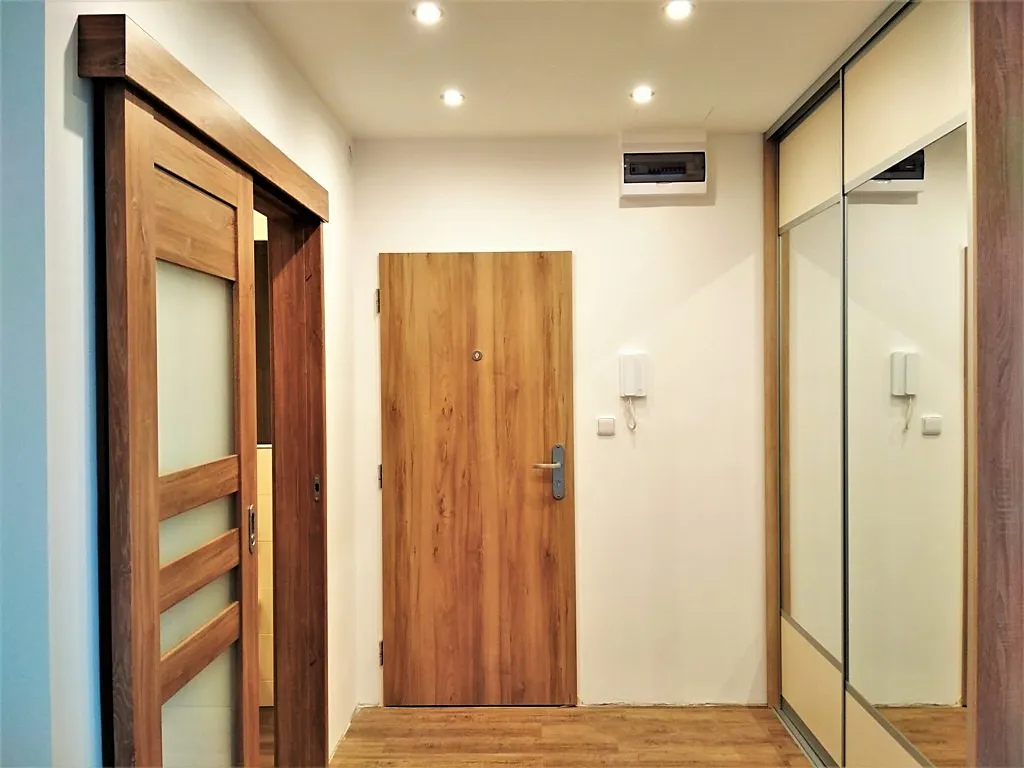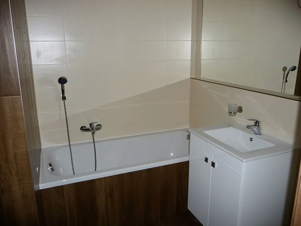 Dispozice: 2 pokoje, kuchyň, předsíň, koupelna s WC, lodžie, sklep. Byt je po kompletní rekonstrukci – vyzděné jádro, koupelna s vanou a WC, s připojením na pračku, kuchyňská linka se sklokeramickou varnou deskou, elektrickou troubou, myčkou a lednicí s mrazákem, nové obložkové vnitřní dveře vč. bezpečnostních vchodových dveří, plastová okna, světla, osvětlení v podhledech. Na podlahách jsou kvalitní vinylové krytiny a dlažba ve shodném designu. Byt je prostorný, světlý, v chodbě je praktická vestavěná skříň. Z oken bytu je hezký výhled na vrcholky Krkonoš.