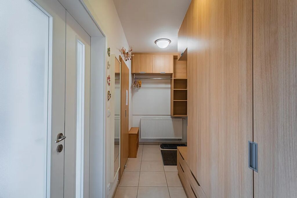 Apartmán se prodává jako plně vybavený včetně kvalitních kuchyňských spotřebičů a kompletního nábytku,
