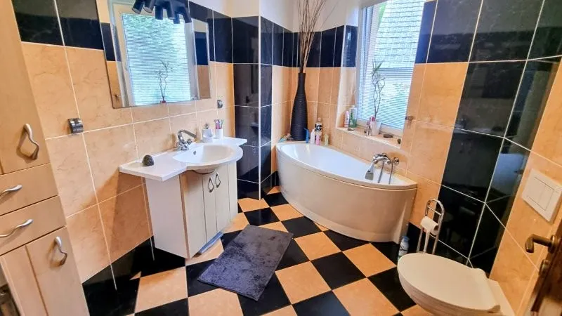 686 Prodej krátkodobě užívaného prostorného rodinného domu 4+1 s prostornou stodolou a zahradou v klidné lokalitě městyse Stařeč kolaudovaného v roce 2009 vzdáleného cca 2 km od Třebíče. V přízemí je prostorné zádveří ( 6,2 m2 ), hala ( 9,1 m2 ) v současnosti propojená s kuchyní ( 12,1 m2 ) a s obývacím pokojem ( 35,6 m2 ), dále pak tři ložnice ( 11,5 m2, 8,2 m2 a 13,8 m2 ), spíž ( 1,7 m2 ), WC ( 2,6 m2 ), koupelna s WC ( 6,5 m2 ). Na dům navazuje z větší části zastřešená terasa ( 33 m2 ), z jedné poloviny podsklepená velká stodola ( 100 m2 ), zahrada ( 1.039 m2 ) a parkovací plocha. V podkroví je prostorná půda. Dům je vybaven fotovoltaickými články s baterií na 9,96 kW a postaven je z bloků POROTHERM o síle 44 cm. Sítě: elektřina, obecní vodovod a kanalizace, plyn je v dosahu cca 35 m. Topení je řešeno převážně krbovou vložkou s možností vytápění elektrokotlem s radiátory, ohřev vody elektrickým boilerem. Aktuální roční spotřeba elektřiny v domě včetně elektrického topení a ohřevu vody je 34.000,- Kč. Zastavěná plocha 160 m2, užitná plocha cca 140 m2, stodola 100 m2. Pozemky celkem o výměře 1.299 m2. PENB D. Volný IHNED.