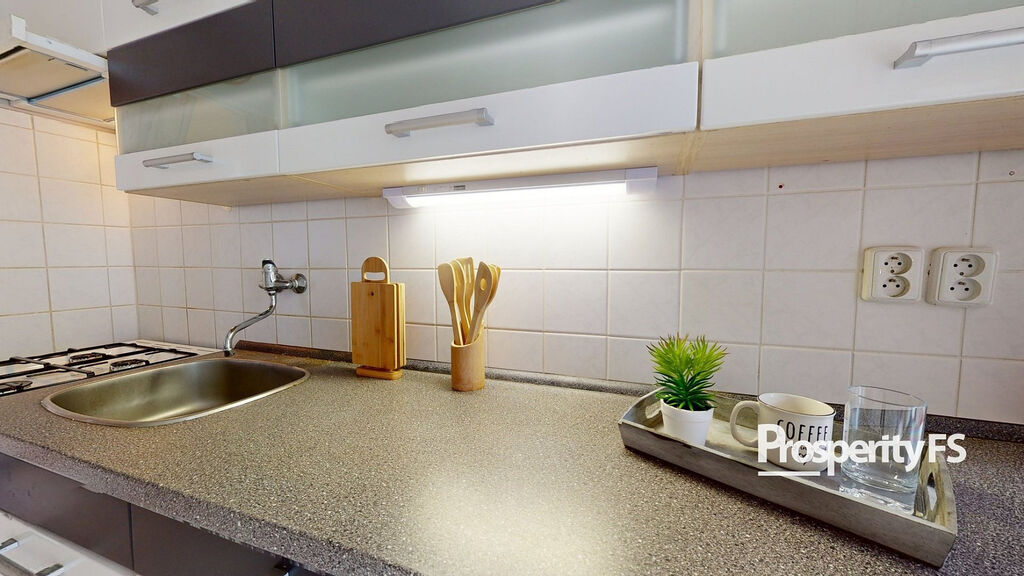 Bytová jednotka se nachází v pátém nadzemním podlaží panelového domu s výtahem, o užitné ploše 41m², je vybaven plastovými okny, kuchyňskou linkou včetně kombinovaného sporáku (plynová varná deska a elektrická trouba), dále koupelna s rohovou vanou a toaletou. Byt má dálkové vytápění i ohřev teplé vody, nachází se několik minut pěší chůze od mateřské, základní školy. Elektřina s plynem bude přihlášená na nájemníka u dodavatele, voda a teplo je rozúčtované jednou ročně podle bytových měřidel. K dispozici je přípojka na TV a internet. S bytem je spjato užívání sklepní kóje.