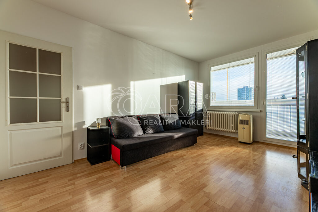 ✅ Byt je částečně vybaven – k dispozici je kuchyňská linka, velká vestavěná skříň a další potřebný nábytek, takže je možné okamžité nastěhování.