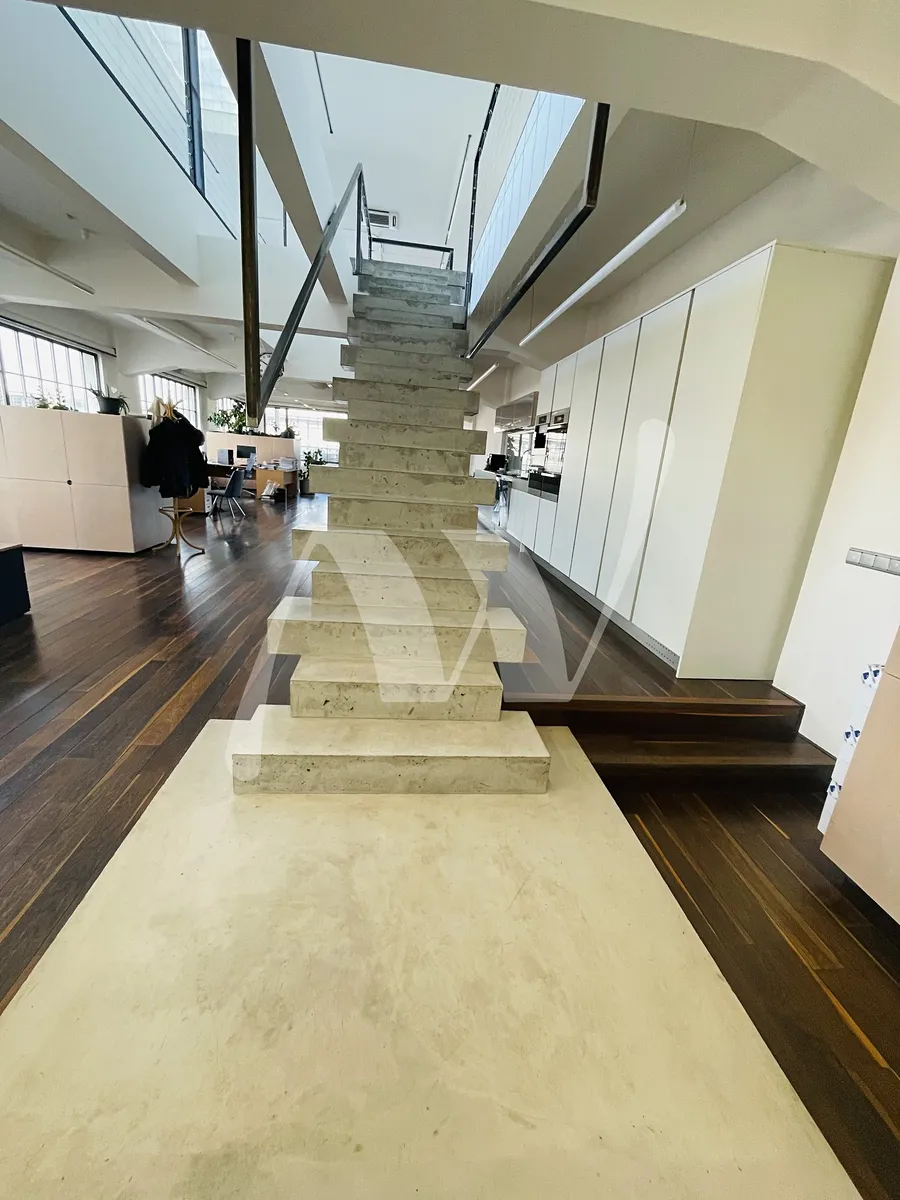 Prostory o velikosti 456 m2 se nachází ve 3. a 4.patře budovy C v AREÁLU PODKOVÁŘSKÁ a mají otevřenou dispozici řešenou jako mezonet, s betonovým schodištěm propojujícím patra. Součástí je prostorná soukromá terasa a balkon.