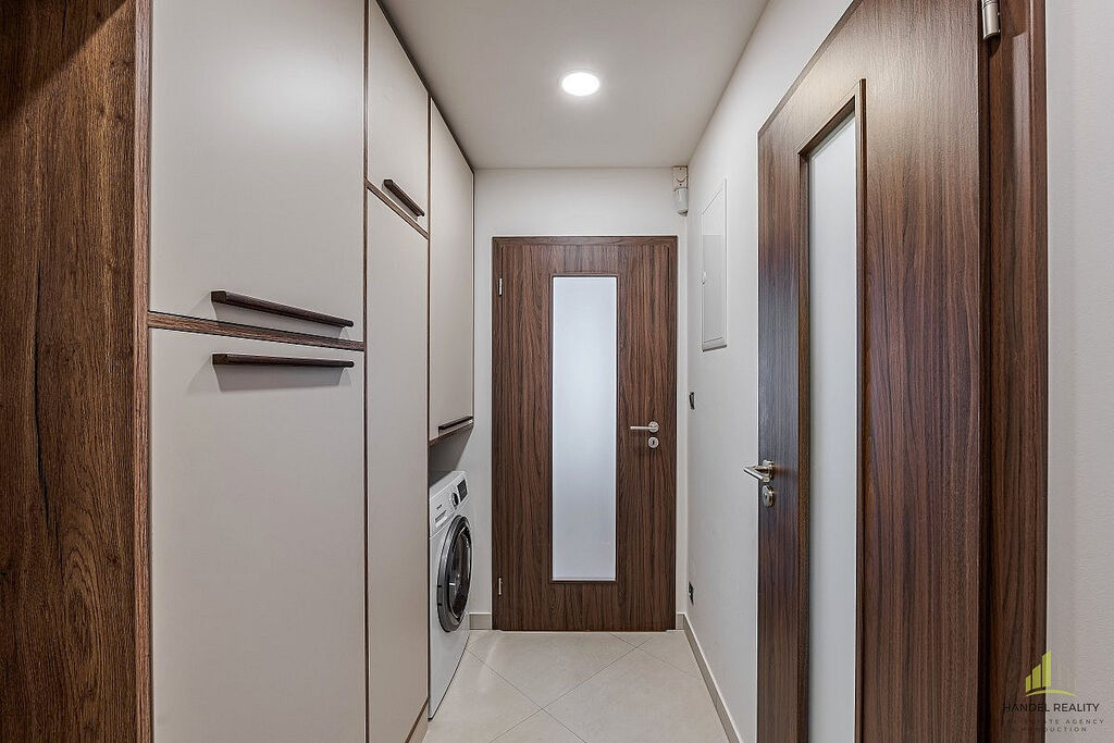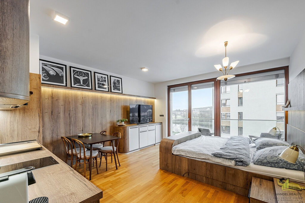 Nabízím k pronájmu moderní byt 1kk o velikosti 35 m², který se nachází ve 4. patře prestižní Rezidence Nad Vltavou v ulici V Háji - Holešovice. Z bytu je krásný výhled na Vltavu, na jejíž stranu je orientován i balkon, který je jako dělaný pro ranní kávu nebo večerní posezení s výhledem na řeku. Interiér je navržen v moderním stylu s důrazem na kvalitu a funkčnost. Součástí vybavení bytu je kuchyňská linka vyrobená na míru s indukční varnou deskou, troubou a dostatkem úložného prostoru. Veškerý nábytek v bytě byl zpracován na míru, aby dokonale ladil s interiérem a maximálně využíval každý centimetr prostoru. Obytná část je světlá, vzdušná a působí velmi příjemně. K bytu náleží i garážové stání, na které se pohodlně vejde i větší SUV.