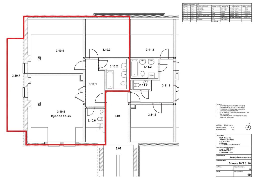 Nabízíme Vám podkrovní byt 3+kk 85,0 m² s terasou 14,7 m² ve zrekonstruované prvorepublikové vile v Čelákovicích. Byt se nachází ve 3. nadzemním podlaží. Ze vstupní chodby se vstupuje do všech místností, tj. do světlého obývacího pokoje, který dává prostor pro promyšlené zařízení interiéru, propojující kuchyňskou část a odpočinkovou zónou a zároveň navazující na velkou terasu orientovanou na jihozápad, dále do ložnice, která má orientaci rovněž na jihozápad a samostatný vstup na již zmíněnou terasu. Dále se z předsíně vstupuje do pokoje, který se nabízí jako dětský, a pak ještě do prostorné koupelny s vanou, dvěma umyvadly a WC a naposledy do samostatného WC, kde je připravený vývod na pračku.