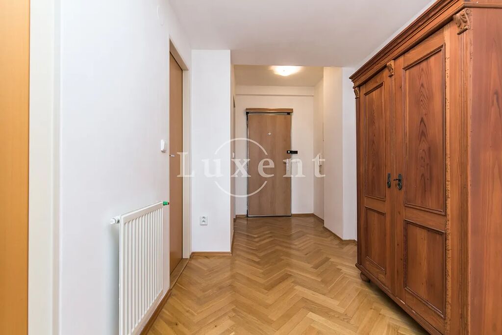 Podlahy tvoří dřevěné parkety, samozřejmostí jsou bezpečnostní dveře a vlastní kotel. Součástí vybavení je také starožitný nábytek. Koupelna a toaleta jsou po právě dokončené rekonstrukci ve vysokém standardu. Byt je klimatizovaný a okna jsou opatřena venkovními roletami na dálkové ovládání.