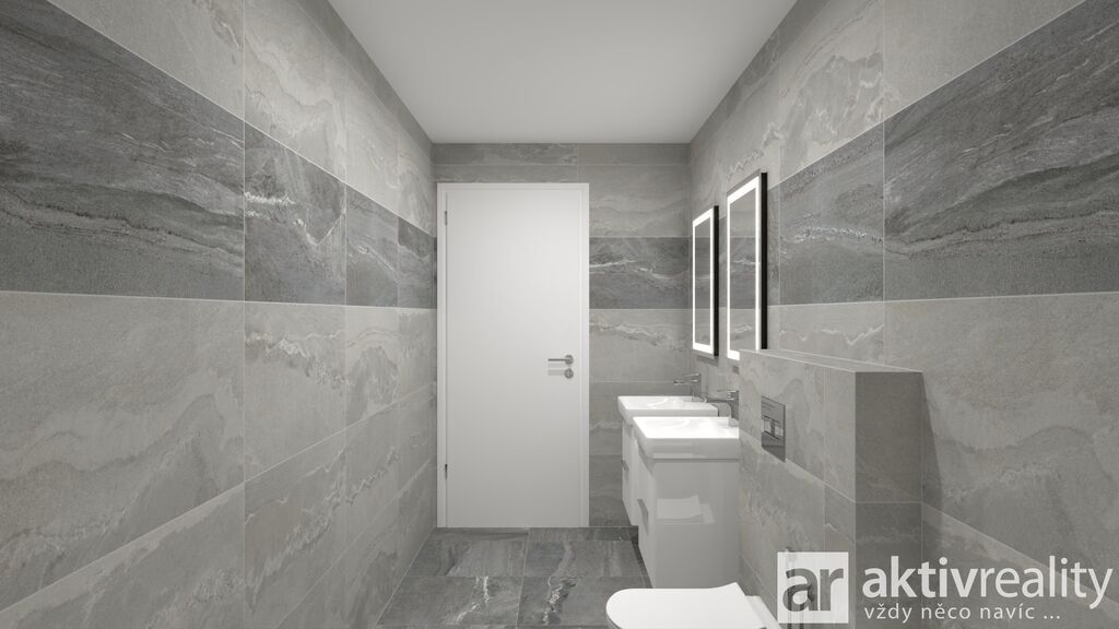 Dům je vybaven moderním tepelným čerpadlem vzduch–voda napojeným na podlahové vytápění v celém domě, což zajišťuje stabilní teplotní komfort a nízké provozní náklady. Plastová okna s izolačními trojskly doplňuje venkovní stínění na elektrický pohon. Koupelny jsou řešeny v nadčasovém stylu a vybavené kvalitní sanitou Hansgrohe a Laufen. Součástí domu je také příprava na krbová kamna včetně komínu, což budoucím majitelům umožňuje doplnit interiér o další prvek tepelné pohody. Podlahy v domě byly zvoleny s důrazem na kvalitu i estetiku – celé přízemí je provedeno ve velkoformátové dlažbě 120×120 cm v dekoru mramoru, která dodává prostoru moderní vzhled a je zároveň praktická pro rodinný provoz. Schodiště a celé horní podlaží jsou osazeny vinylovou podlahou v dekoru přírodního dubu, která přináší příjemně teplý charakter a vizuální kontinuitu interiéru.