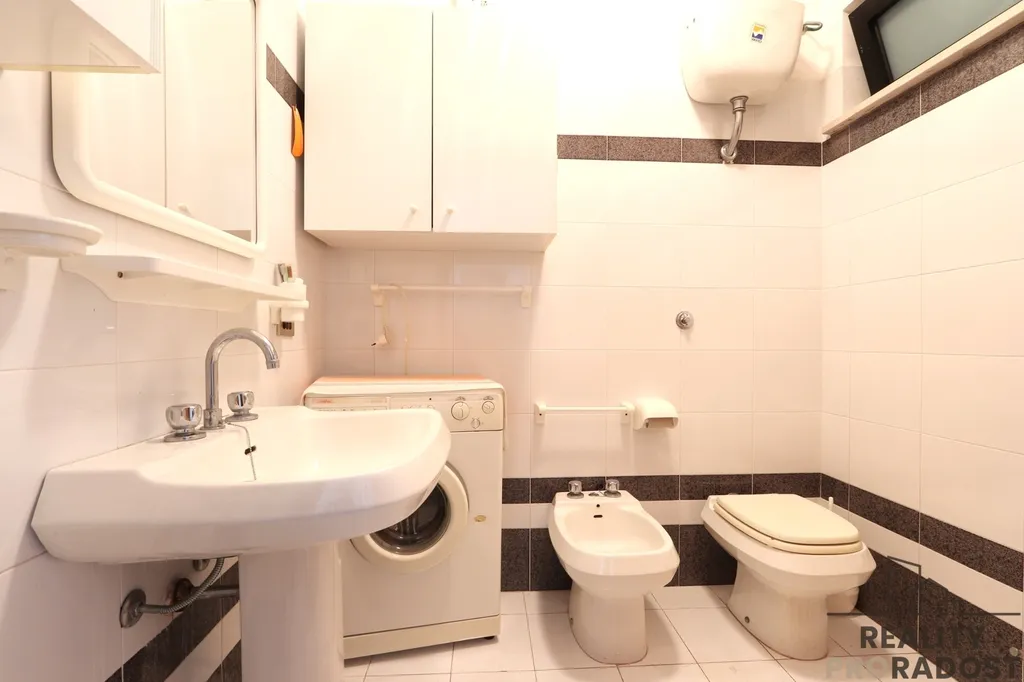 Nabízíme pěkný dvoupokojový apartmán pouhých 400 m. od Jaderského moře s prostornou terasou a vlastní garáží. Byt o rozloze 54 m² se nachází ve druhém patře. Tato lokalita je žádána pro svou krásnou přírodu, množství palem a dlouhé malebné promenády k procházkám. Příjemné prostředí a chytrá investice s vysokým potenciálem pronájmu.