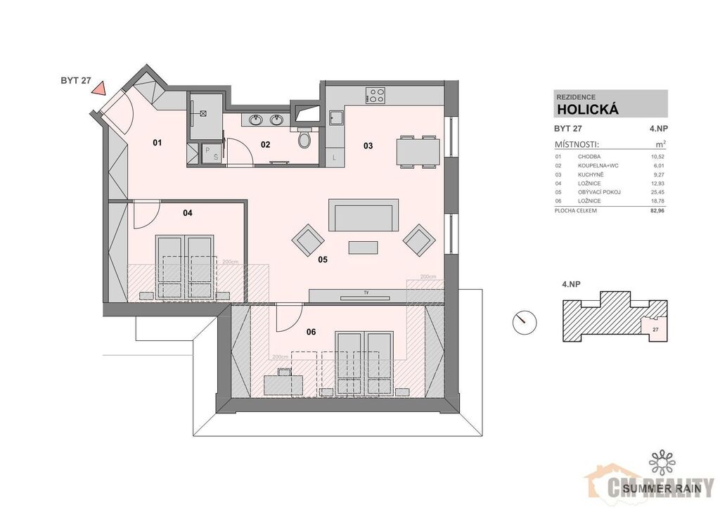 Nabízíme k pronájmu moderně zrekonstruovaný byt 4+kk o velikosti 82 m, situovaný ve třetím patře Rezidence Violka.