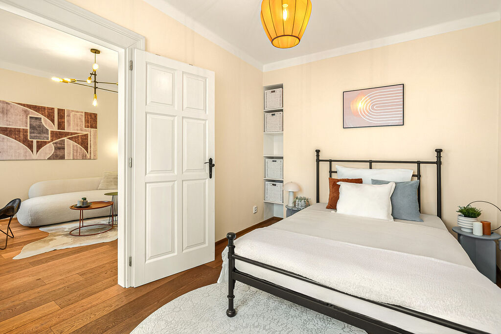 V klidné části Zámecké ulice najdete byt 2+1, který spojuje atmosféru historické Prahy s komfortem moderního bydlení.