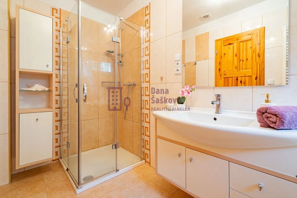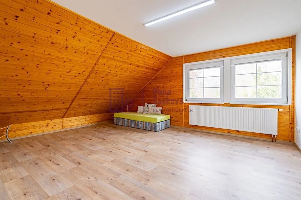 Obytná část s dispozicí 7+kk o ploše 181 m² + terasa 12 m2 nabízí velkoryse pojatý centrální prostor s obývákem a kuchyňským koutem, 4 ložnice, pracovnu, koupelnu se sprchovým koutem i vanou, další samostatnou toaletu, spíž, komoru a odpočinkový pokoj se saunou.