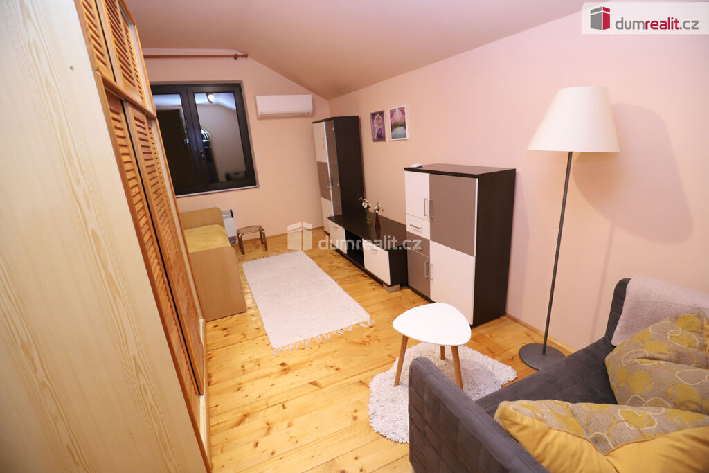 Dumrealit.cz Vám zprostředkuje pronájem pěkného útulného bytu 1+1 o celkové rozloze 45 m² v prvním patře cihlové vily v Karlových Varech. Dispozice bytu: předsíň, kuchyně s jídelním koutem, obývací pokoj spojený s ložnicí, prostorná koupelna s vanou dále průchozí do velké technické místnosti, kde je umístěn bojler, samostatná toaleta. V kuchyni zůstává k dispozici kuchyňská linka s umyvadlem, je zde základní dvojplotýnka na vaření a malá pečící trouba, lednice s mrazákem, jídelní kout. V obýváku je postel s matrací, skříně, sedačka, obýváková stěna. Podlahy jsou dřevěné, v kuchyni jsou na stěnách dřevěné palubky což činí byt příjemně útulným. Vytápění zajišťuje klimatizace a přímotopy, ohřev teplé vody bojler. Měsíční platba 11.500,-Kč je fixní měsíčně a to včetně elektřiny i vody. Energie se na nájemníka nepřepisují. Kauci požaduje majitel ve výši 16.000,-Kč. Byt je vhodný max. pro 2 osoby, může být menší čistotný pejsek či kočička. Byt není vhodný pro rodiny s dětmi. U domu je možné parkovat pro 1 osobní auto. Na zahradě je možné využívat terasu na grilování či posezení. V Karlových varech je veškerá občanská vybavenost včetně supermarketů, úřadů, restaurací, pošty, atd.. Karlovy Vary jsou městem ideálním pro život i odpočinek, v dosahu je příroda, k dispozici cyklostezka vedoucí až do Německa. Sportovcům je k dispozici Termal, KV Arena, fitness centra, parky atd.. Provize RK činí 10.000,-Kč vč. DPH. Ev. číslo: 653182.
