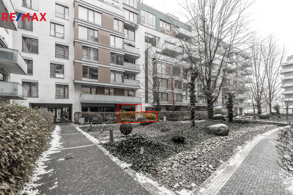 Byt je orientovaný do klidného vnitrobloku s japonskou zahradou, což zajišťuje naprosté soukromí a příjemnou atmosféru uprostřed dynamicky se rozvíjejícího Karlína.