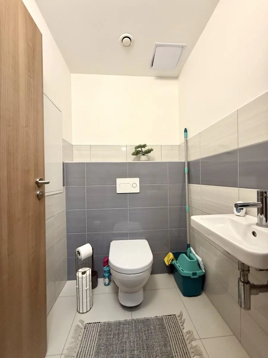 V koupelně se nachází jak sprchový kout, tak i vana. Pračku nutno mít vlastní. Samostatná toaleta.