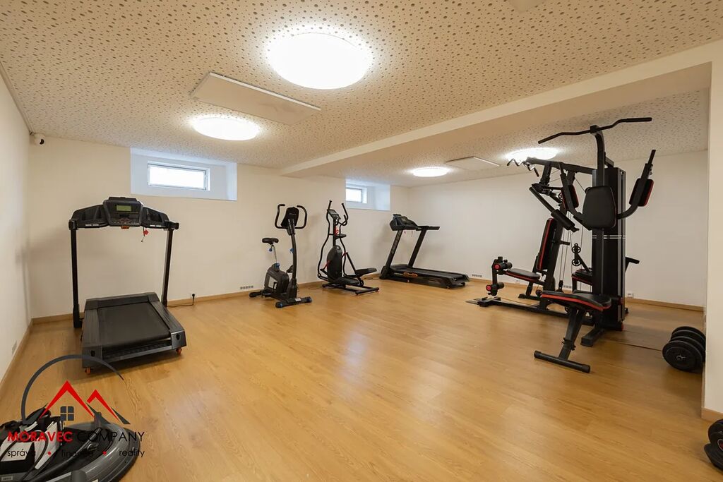 Součástí domu je navíc fitness místnost, wellness a také venkovní krytý bazén.