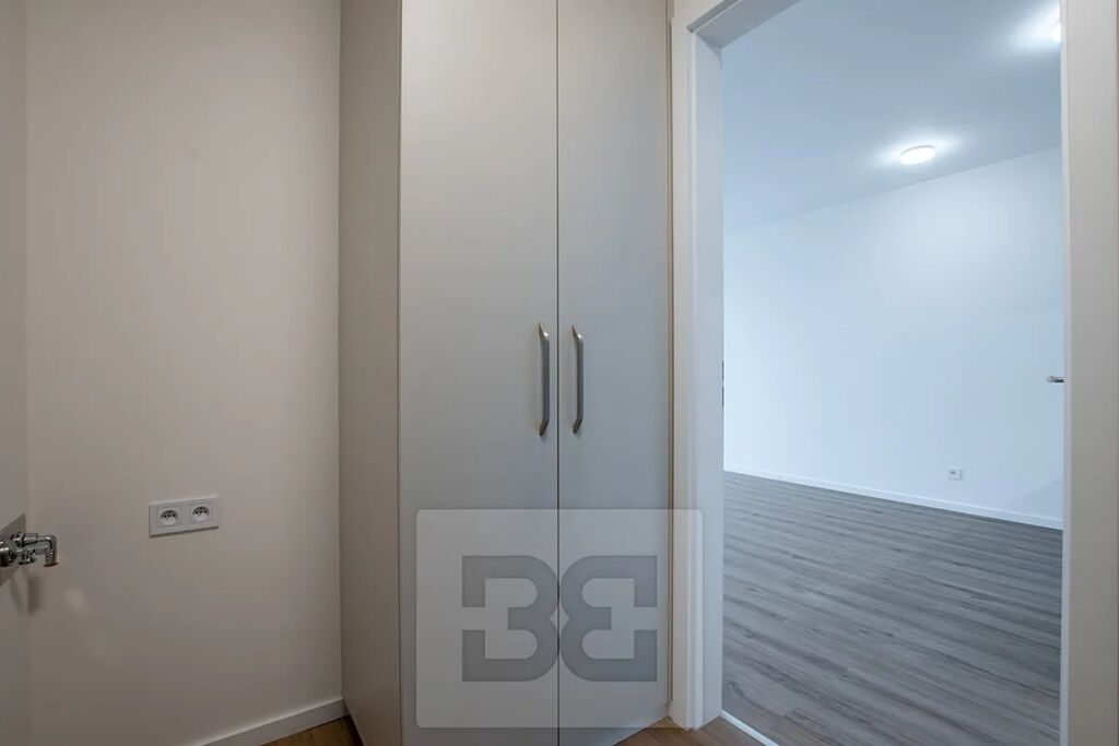 Interiér bytu je proveden ve vysokém standardu – kvalitní vinylová podlaha, velká okna s výbornou tepelnou i zvukovou izolací a moderní kuchyň v neutrálním designu.