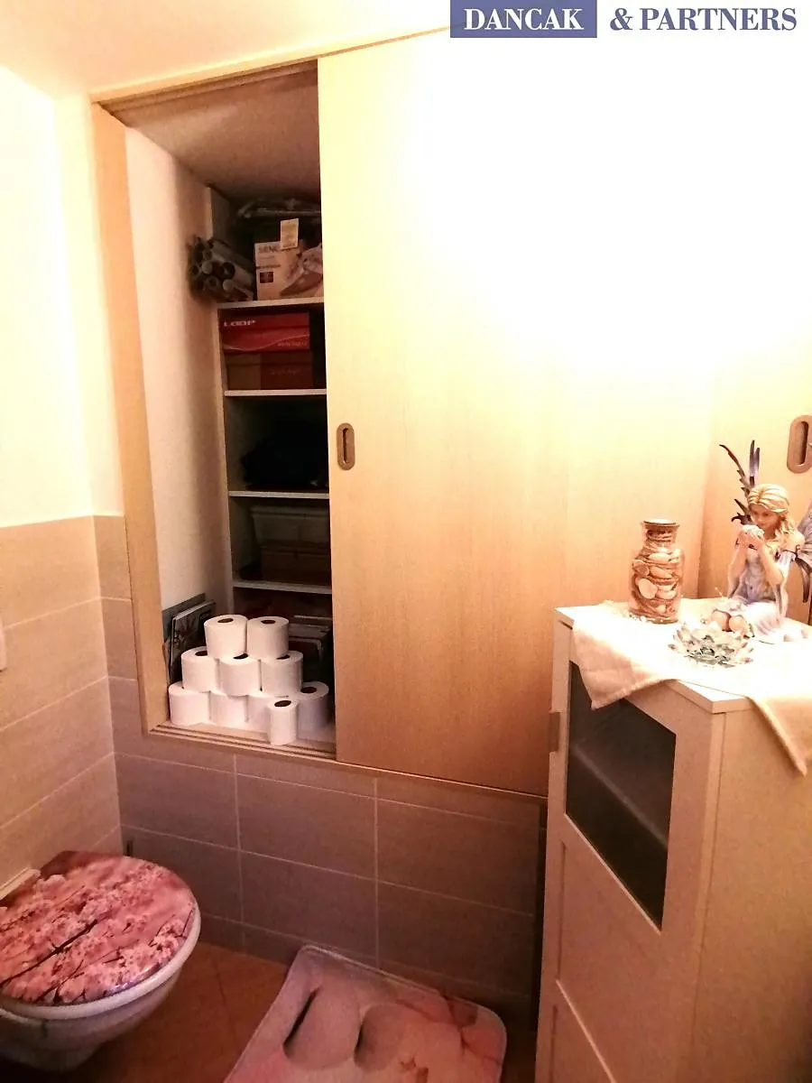 Byt je po kompletní rekonstrukci vybaven kuchyňským koutem s kuch. linkou včetně spotřebičů (lednice, myčka, varná deska, digestoř, pečící trouba), dále je zde koupelna s vanou, umyvadlem, koupelnovým nábytkem a samostatné WC s malým umyvadlem a s vestavěným úložným prostorem.