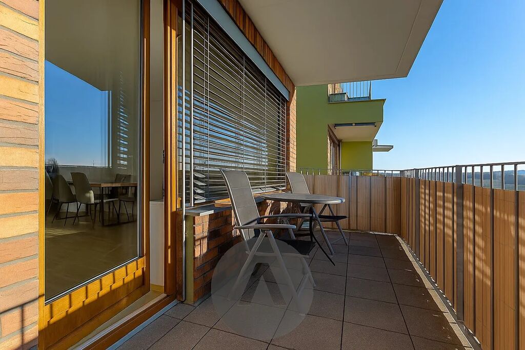 – přímý vstup na jižně orientovaný balkon, který díky své šířce působí jako menší terasa a je ideální pro posezení, kávu i relax
