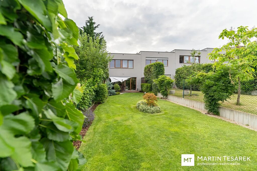 Řadový dům z roku 2009 se rozkládá ve třech podlažích. V suterénu se nachází garáž o rozměrech 2,7 × 3,7 m, prádelna a menší sklad. V přízemí je dominantním prvkem prostorný obývací pokoj s krbem a plně vybavenou moderní kuchyňskou linkou. Z obývacího pokoje je vstup na terasu a do krásně udržované a vzrostlé zahrady o výměře 207 m², orientované na východ. V přízemí se dále nachází spíž a samostatné WC.