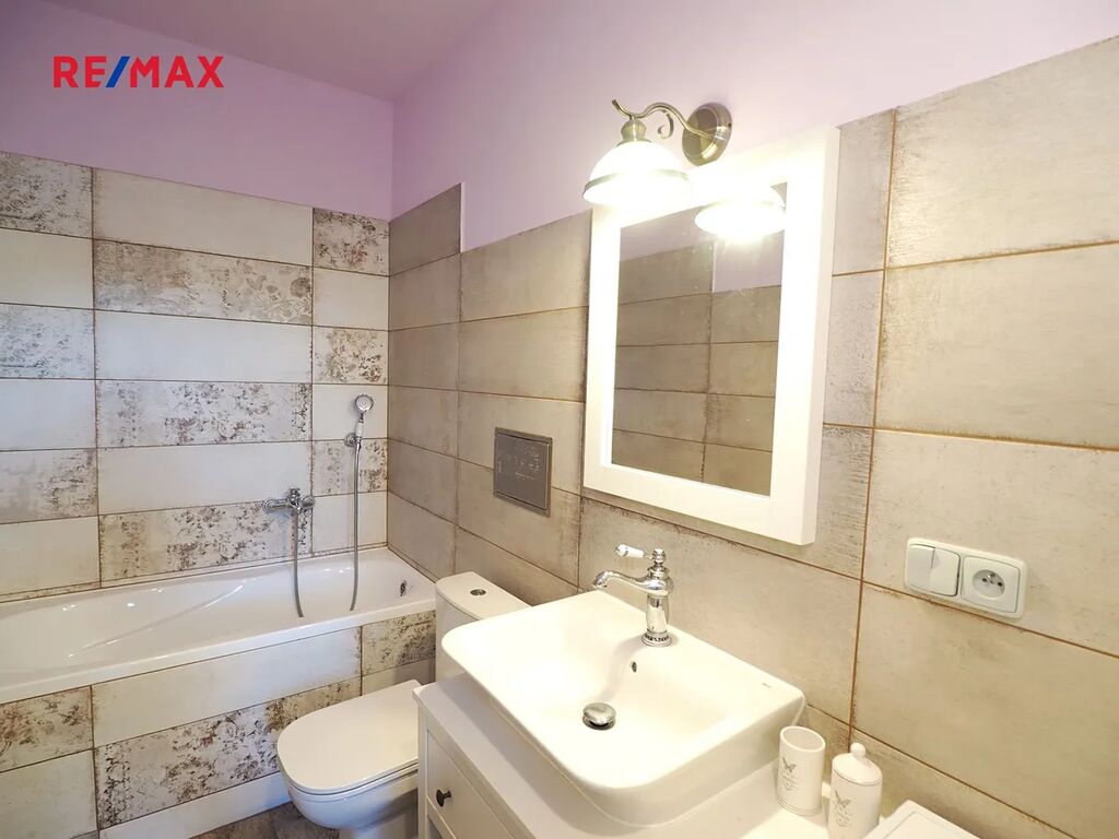 V bytě je prostorná koupelna s vanou, nové povrchy podlah v celém bytě, obložkové zárubně, kuchyňská linka s vestavnou troubou, varnou deskou a myčkou. Nachází se ve 2.NP a je orientován na severozápad. Příslušenstvím bytu je sklepní kóje. K dispozici je venkovní parkovací stání, společná garáž (kolárna, kočárkárna) a zahrada s venkovním posezením a pergolou.