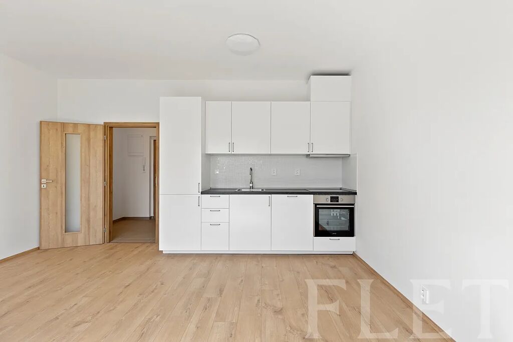 Kuchyně s obývací částí je díky velkému francouzskému oknu krásně prosvětlená, což prostoru dodává vzdušnost a příjemnou atmosféru po celý den. Moderní kuchyňská linka nabízí dostatek úložných prostor a poskytuje komfort pro každodenní vaření. V prostorné koupelně najdete sprchový kout, toaletu a pračku.