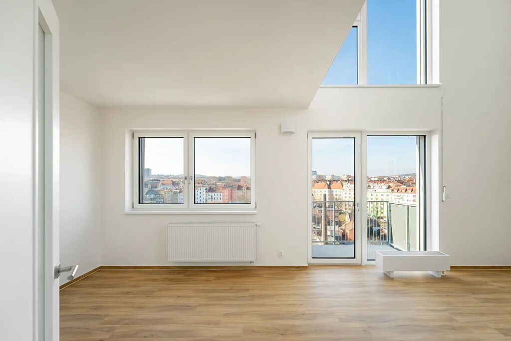 Byt se nachází v 11.-12. patře novostavby a poskytuje pěkné výhledy na okolní panorama města. Užitná plocha bytu činí 87 m2, což nabízí dostatek prostoru pro pohodlné bydlení. K bytu náleží také balkón o velikosti 4 m2 sklep o rozloze 3 m2, který poskytuje dostatek úložného prostoru pro Vaše potřeby.