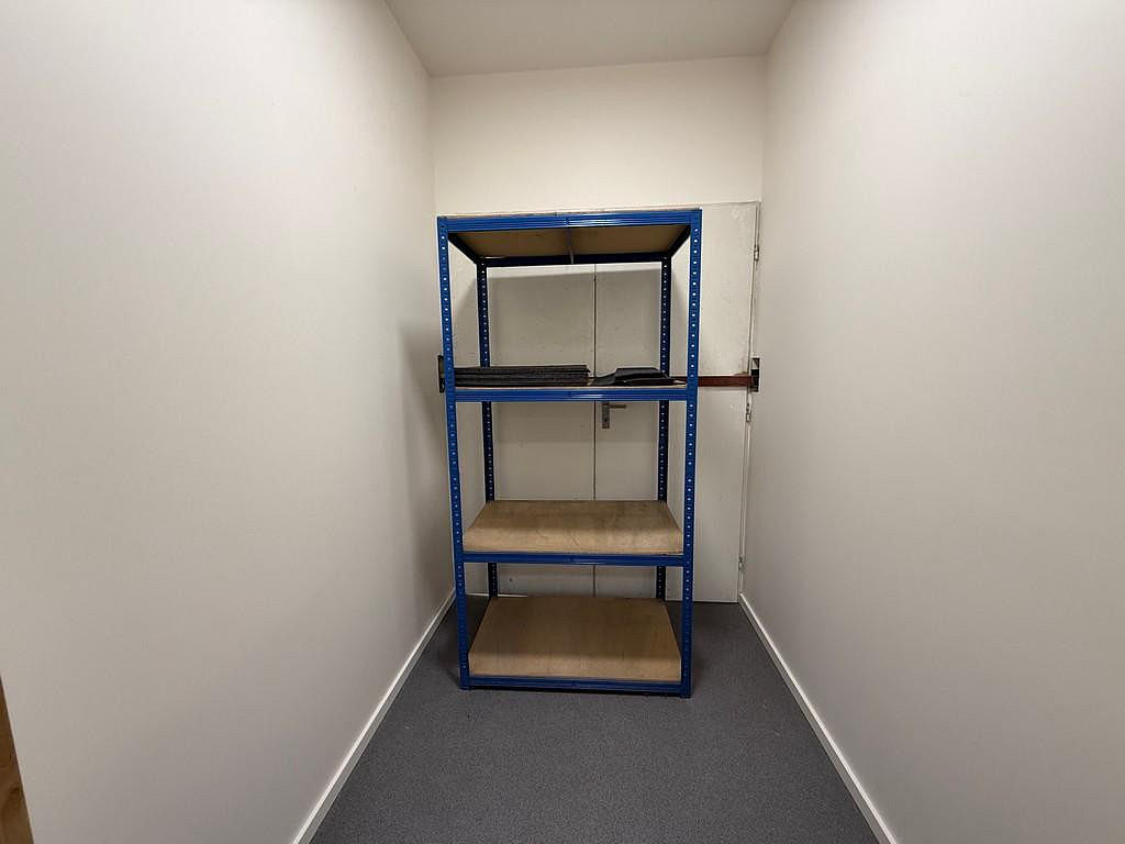Ve vstupní hale je ideální místo pro sedačku s konferenčním místem, ale může tam také sedět například recepční či zde může být umístěn sekretariát. Kuchyňka o výměře cca 1,60m² je vybavena lednicí, mikrovlnnou troubou a spoustou úložného prostoru. WC jsou samostatné, každé vždy s umyvadlem o výměře cca 1,26m² a cca 2,11m². Chodba vedoucí do jednotlivých místností má výměru cca 23,70m². Kanceláře jsou samostatné, celkem je jich osm. Každá je vybavena klimatizací značky Sinclair, která chladí i topí. Místnosti jsou poměrně veliké a jejich výměra činí cca 12,94m², cca 12,84m², cca 12,76m², cca 11,70m², cca 14,90m², cca 11,06m² a 2x 12,08m². Na konci chodby je samostatná místnost o výměře cca 3,10m², která může sloužit jako úklidová místnost, archiv, ale i jako serverovna.