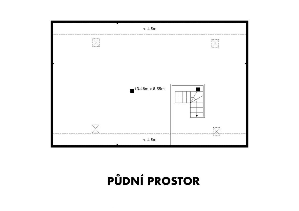 - Prostorný půdní prostor vhodný k vybudování bytové jednotky