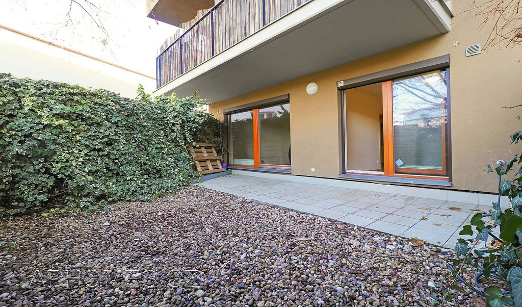 Interiér bytu tvoří vstupní předsíň, samostatná koupelna s vanou a toaletou, prostorný obývací pokoj (vstup na zahradu), ložnice (vstup na zahradu). Zahrada 30m² se vstupní terasou 20m².