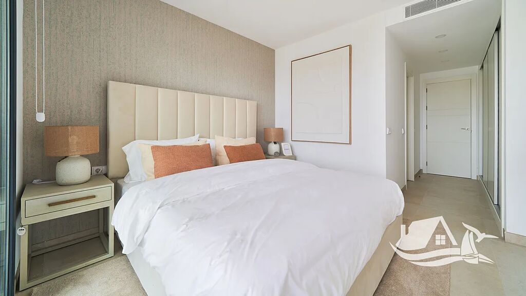 Apartmán druhem patře nabízí 158 m² komfortního prostoru s dvěma ložnicemi, dvěma moderními koupelnami a otevřenou obytnou částí propojenou s kuchyní.