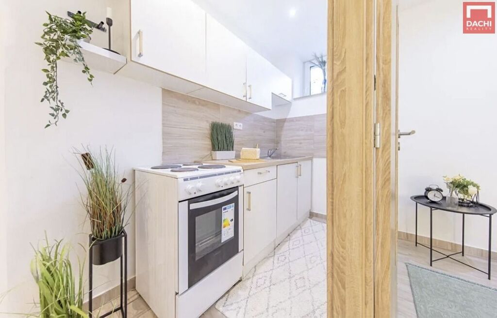 Dispozičně prostor nabízí neprůchozí pokoje, praktičnost a dobře využitelný prostor. Bonusem pro nájemníky je možnost využití společného dvorku s příjemným posezením s pergolou.