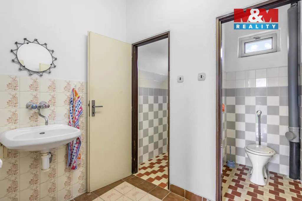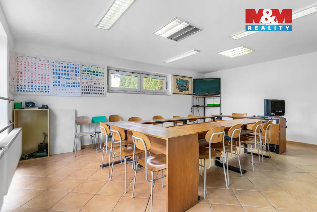 Obchodní prostor – 232 m², kancelář – 22 m², dílna 1 – 65 m²: hever, montážní jáma, olejový kotel, umyvadlo, vstup na půdičku, světlíky. Dílna 2 – 58 m²: myčka, umyvadlo, vstup na půdu.