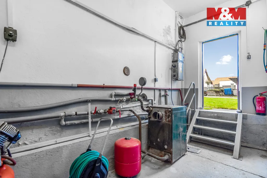 Kotelna – 9 m²: plynový kotel, elektrický bojler, kotel na tuhá paliva, kompresor, sklad, sociální zázemí – 29,4 m² (3× WC, sprchy, šatna, kuchyň).