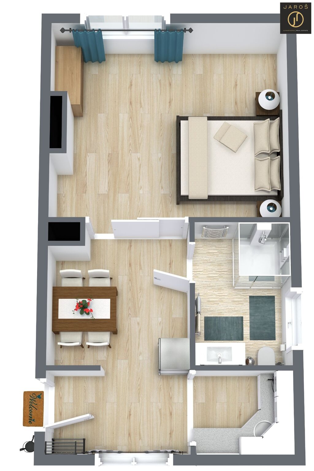 Nabízíme vám k pronájmu zrekonstruovaný byt o dispozici 1+kk 28 m2. Byt sestává z pokoje, kuchyňského koutu, vstupní chodby a koupelny s toaletou. Byt se nabízí vybavený (viz. fotografie), ihned k nastěhování. Kuchyňský kout je vybavena základním vybavením, myčkou nádobí, varnou deskou s digestoří a jídelním stolem pro 4 osoby. Postel je včetně matrací a ložního prádla.