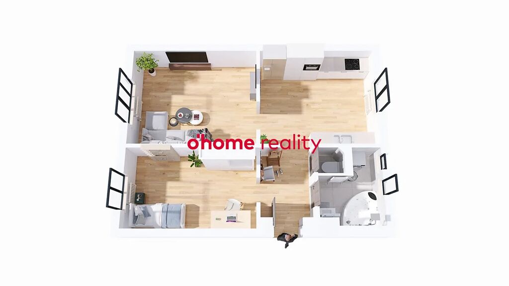 Promyšlená dispozice – prostorná chodba, kuchyně s návazností na obývací pokoj, ložnice, koupelna a samostatné WC