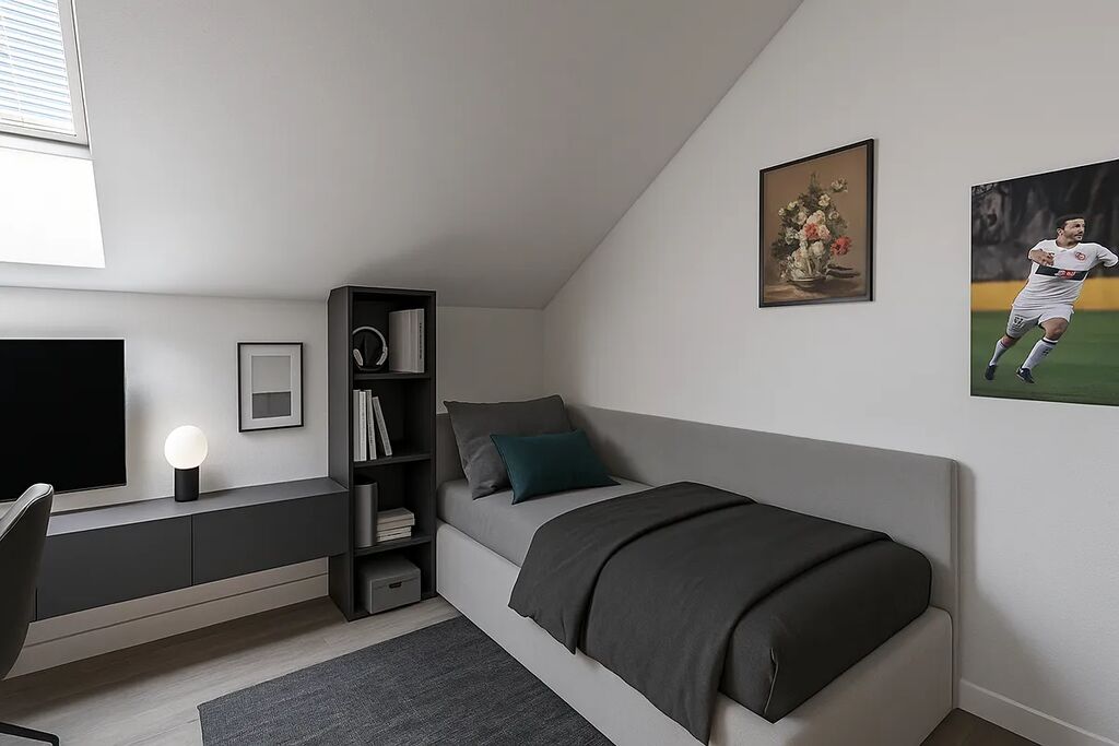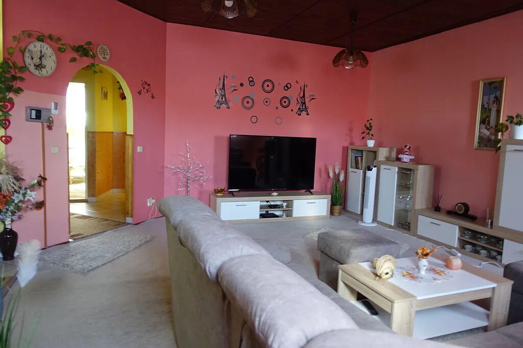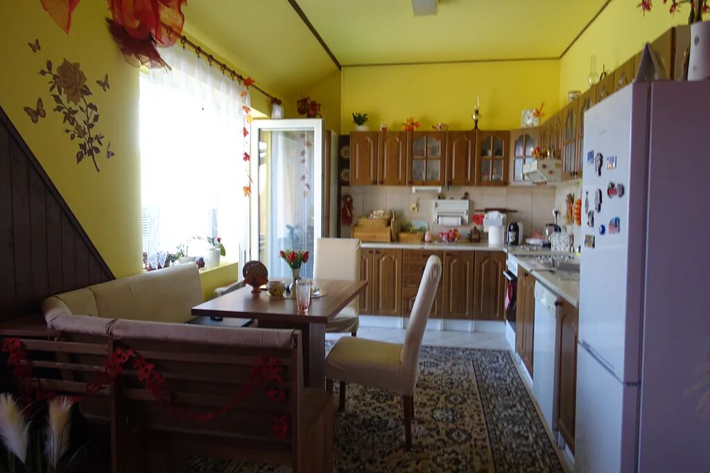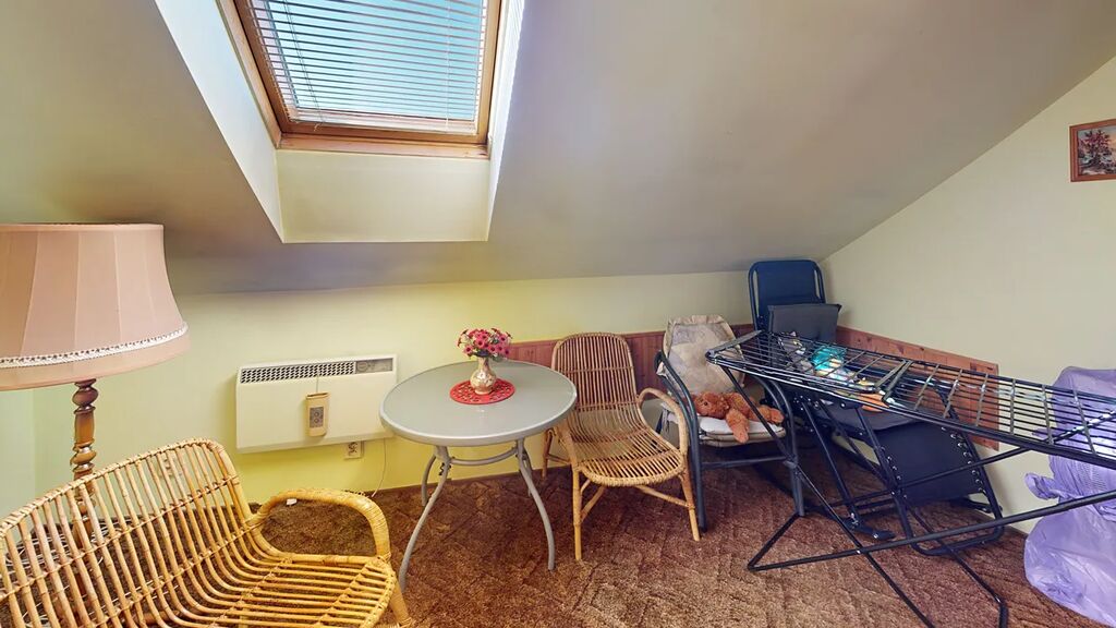 Horní patro disponuje obývacím pokojem 25m2 + kk 12m2 + lodžie 9m2, dále jsou zde pokoje 11m2, 9m2, 9m2 a koupelna+WC 6m2.Za domem je udržovaná zahrádka 327m2.