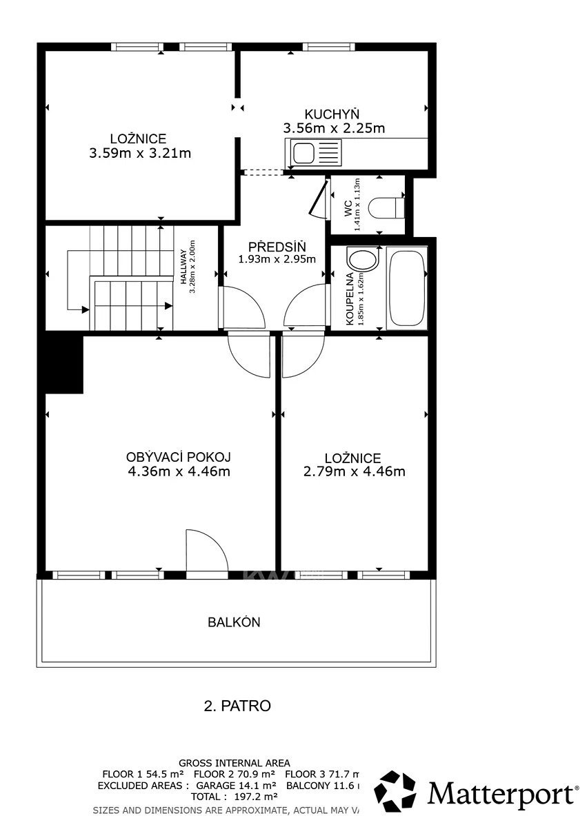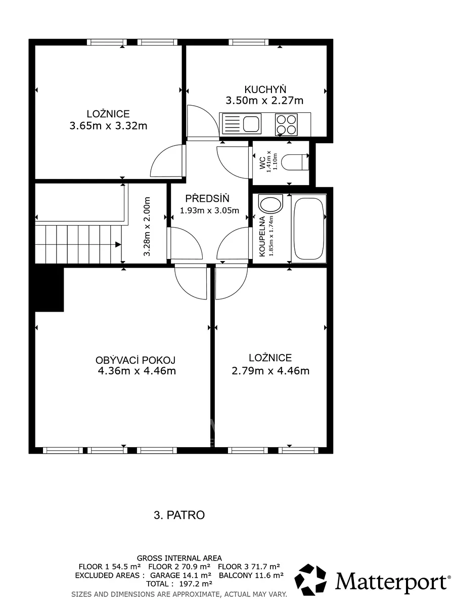 – 3–4 ložnice a prostorná hlavní koupelna s vanou ve 2. patře.