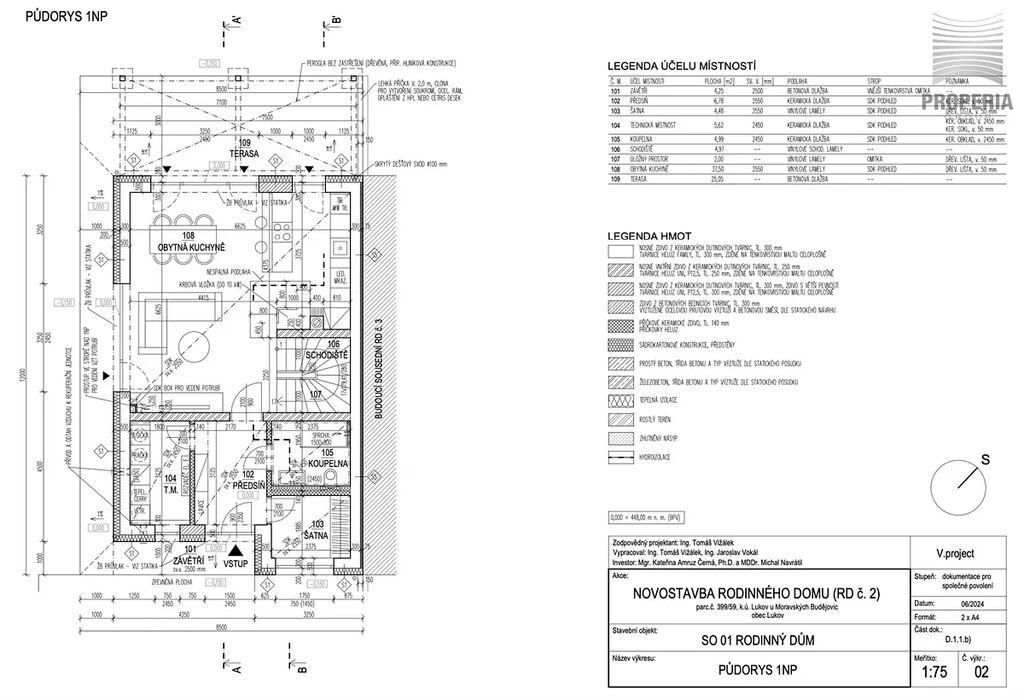 • Zastavěná plocha 90 m² / užitná plocha: 129,41 m² (1NP = 66,34 m², podkroví = 63,07 m²)