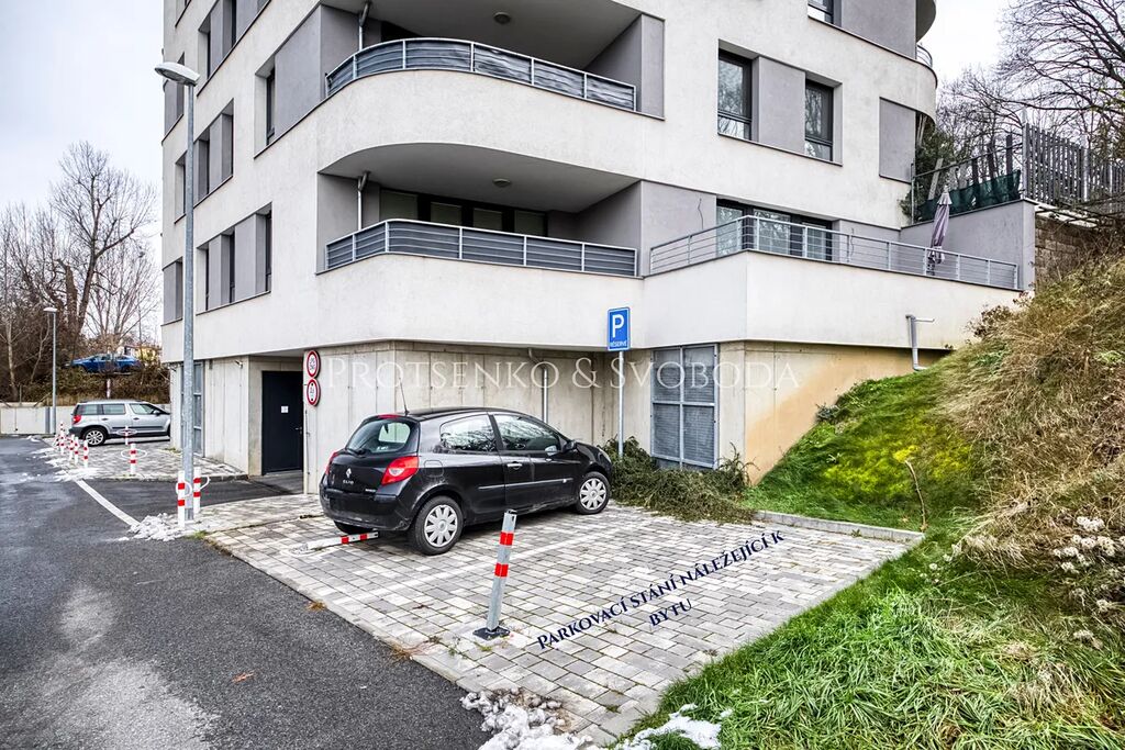 K bytu náleží vlastní venkovní parkovací stání před domem (za poplatek 2.000 Kč/měs.).