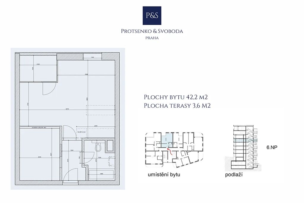 Celková užitná plocha vč. příslušenství: 42,2 m² + 3,8 m² balkon + 2,8 m² sklep